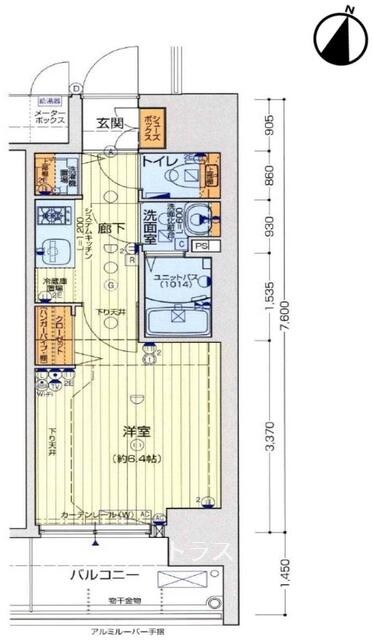 専有面積 | 22.8㎡ | 間取り | ワンルーム | ||