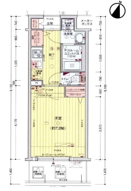 専有面積24.13㎡間取り1K